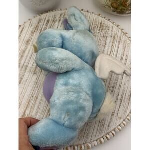 The product is a vintage 1984 Hasbro Disney The Wuzzles Hoppopotamus plush toy, complete with its original tag. This medium-sized plush is part of the Wuzzles character family and was manufactured in South Korea. With its nostalgic appeal and authentic branding, this collectible item is sure to appeal to fans of vintage toys and stuffed animals from the 1980s.