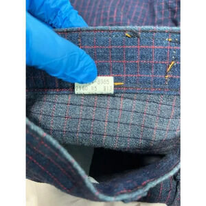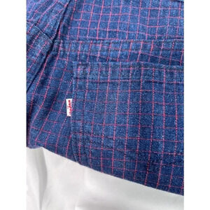 Vintage white tag 1984 Levi's blue and red striped skirt. It is size 13 and has a straight fit. It also has two front pockets and two back pockets. No stretch at all. High waisted. Great used condition