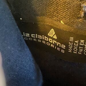 Vintage 1984 Liz Claiborne Crossbody Purse Made in Korea Navy Leather Trim Logo