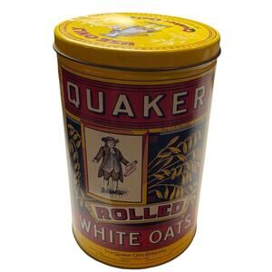 Add a piece of vintage charm to your collection with this limited edition Quaker Oats Company tin. The colorful multi-design on the tin celebrates the brand's history and will make a great addition to any advertising or merchandise collection. Created in 1984 in the United States, this vintage tin is a must-have for any collector. The lid keeps your supplies fresh and the interior provides ample space for your favorite snacks. Don't miss out on this unique piece of history.