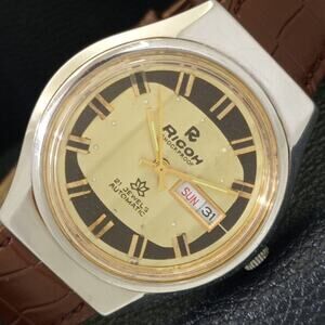 Vintage 1984 Ricoh Automatic Mens Silver Watch W/daydate & Gold accents