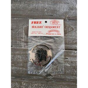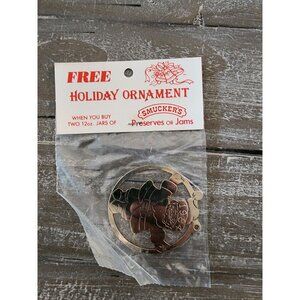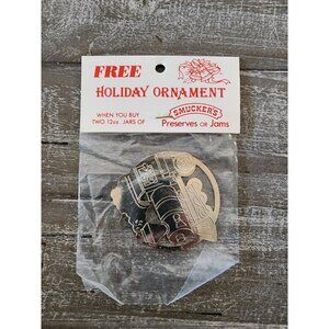 Enhance your holiday decor with this vintage 1984 set of Smucker's collectible ornaments. Featuring charming Santa and train designs, these ornaments add nostalgia to any festive setting.