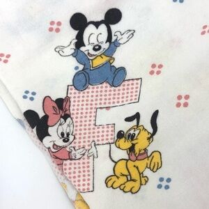 Vintage Receiving Blanket and Fitted Crib Sheet Mickey Minnie Mouse Baby & Friends ABC’s Alphabet Walt Disney Co 1984 Flannel