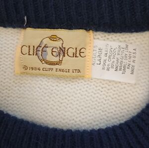 Vintage 1984 Wool Blend Penn State Cream and Navy Sweater Size Large