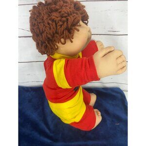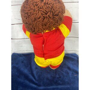 Vintage 1985 Cabbage Patch Kids Doll In Red & Yellow Outfit Brown Yarn Hair 16"