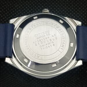 Stainless Steel Case in great condition and almost no flaws. The face features Red accents on Blue Face giving an awesome vintage look overall. It also has a date function!
