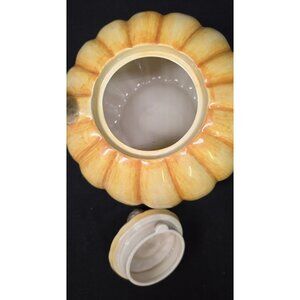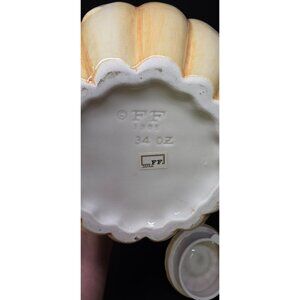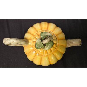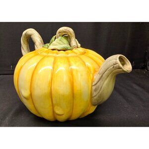 This is a vintage Fitz & Floyd pumpkin shaped teapot. Bottom is marked FF 1985 34 OZ Japan. Item is preowned in good condition. No chips or cracks noted. Normal signs of wear may be present. Please review all photos as a part of the description.