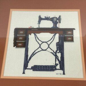 Vintage 1985 Handmade Antique Sewing Machine 16" Framed Cross Stitch