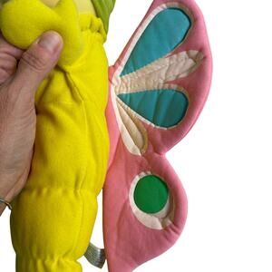 Original 1985 Hasbro Butterfly Gloworm in great vintage condition. Pink/blue wings, yellow sleeper, green cap. Missing inner light component — no glow, body semi-soft but not floppy. Clean and display-ready.