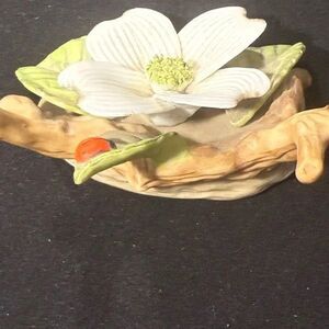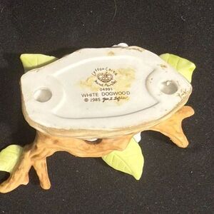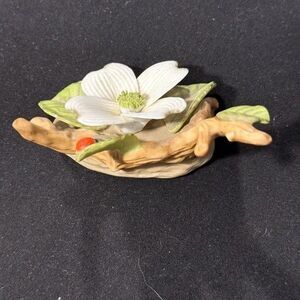 Vintage 1985 Lefton Floral Ceramic Art Piece W/White Flower/Green Leaves 4X2X2
