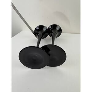 Vintage Black Candlestick Holders 9.5" Tall Crystal Glass Home Decor Set of 2