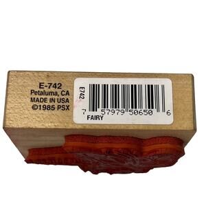Vintage 1985 PSX Wood Mounted Rubber Stamp - Whimsical Fairy w/ Butterfly Wings 2 x 2.5”