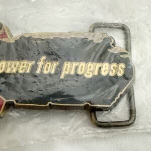 Amazing piece of American industrial history! This authentic 1985 Peabody Coal Company belt buckle features the iconic "Power for Progress" slogan with striking red flame graphics. Perfect for collectors of mining memorabilia, vintage Americana, or anyone who appreciates unique industrial heritage pieces.