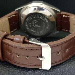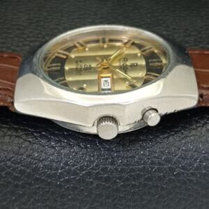 This watch has a stainless steel case in great condition with almost no flaws. The face features Gold accents on a Black Face giving an awesome vintage look overall. It also has a date function!