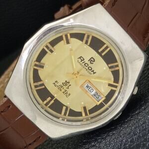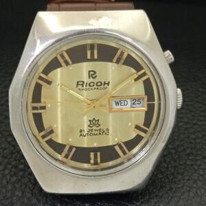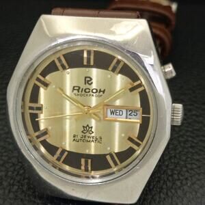 Vintage 1985 Ricoh Automatic Mens Silver Watch W/daydate & Gold accents