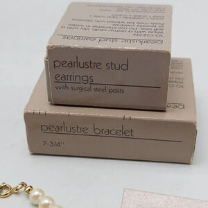 Vintage 1985 Signed Avon Pearlustre Faux Pearl Gold Tone Earring Bracelet 7.75”