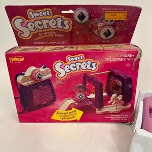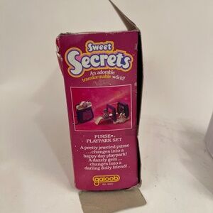 Vintage 1985 Sweet Secrets Purse Playpark #4603 Galoob Incomplete With Box Read.Box is in rough shape but there and it's missing pieces. The top of the pocketbook and the person and maybe another misc pieces. This is a Pre-Owned item! Please check all photos and ask any questions. Minor imperfections, age-appropriate dings, dents, tears, holes, slight staining, and an odor can be expected with pre-owned items. Note: All Ground Shipping will come in a Black Plastic Poly Mailer Bag! Thank You. Follow me for more. All Social Accounts are Aftermorning Thrift.