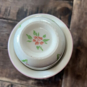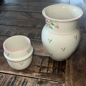 Vintage 1985 Teleflora Ceramic Bedside Nightstand Carafe W/Cup Pink Tulips & Pink Roses
