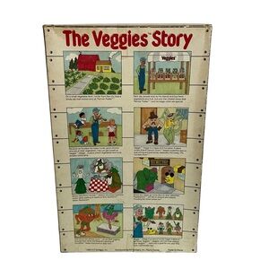 Rare vintage Tony Scallione plush doll from The Veggies line by K.F. Designs (1985). This whimsical chef veggie character comes in its original box with bright colors and storytelling graphics on the back.