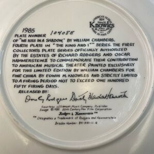 Vintage 1985 " We Kiss in a Shadow" William Chambers plate Knowles