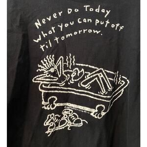 Vintage 1985 lazy Fido Dido T-Shirt single stitch - Men's M to Large, no tag. Relaxed vintage feel, "Never do today what you can put off til tomorrow" quote, Fido Dido in a tub with a rubber ducky