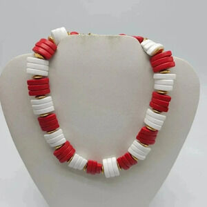 Vintage 1986 Avon Red White Spectator Lucite Beaded Choker Necklace