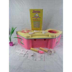 Please look through the pictures before purchasing as they are part of my description. What’s pictured is what’s included and what you will be receiving. Cart is not complete and there is only one complete spoon. Barbie ice cream shop accessories are in overall good condition for their age. Will make a great addition to your set. Thanks for looking, Happy Shopping!!!
