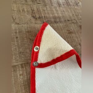 Gently preowned vintage condition. Backing is plastic. Front is Terri cloth. Comes exactly as shown with adjustable button closure.
