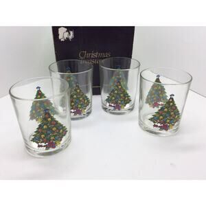 Vintage 1986 Christmas Treasure Old-Fashioned Tumblers Set of 4