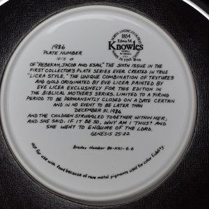 Vintage 1986 Edwin Knowles Rebekah Bible Mothers Collector's Plate