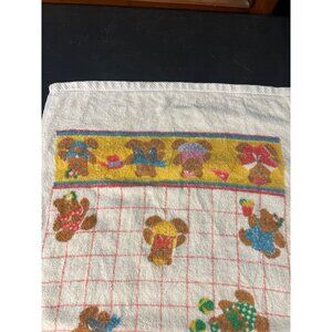 This vintage 1986 Fieldcrest hand towel features a charming bear design, adding a nostalgic touch to any bathroom decor. Made from 100% cotton terrycloth, it offers both absorbency and durability. The quality craftsmanship of the towel reflects Fieldcrest's renowned standards. Manufactured in the USA, it's a collectible item with a delightful pattern.