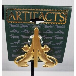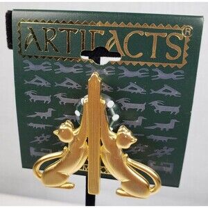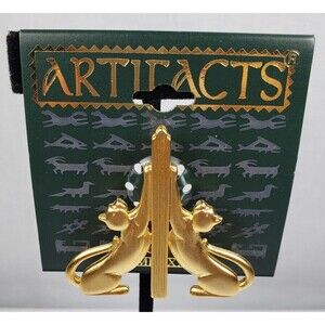 Vintage 1986 JJ Jonette Gold Tone Cat BookEnds Artifacts Brooch