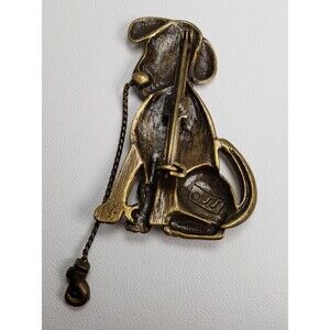 Vintage 1986 JJ Jonette Gold Tone Dog With Leash Brooch