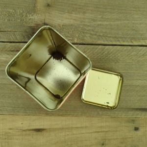 There is some discoloration and rust on bottom rim, lid rim and inside of the tin. Please examine all photos because it sounds worse than it is. 😉