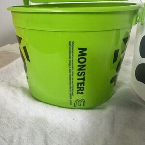 • Includes: Vintage 1986 Pumpkin Pail with green stem lid & black handle (marked ©1986 McDonald’s Corp., Made in USA), • 2022 Skeleton Pail (orange, pumpkin-lid top), • 2022 Monster Pail (green, pumpkin-lid top), • 2022 McBoo Ghost Pail (white, pumpkin-lid top) - * this has a couple of cracks on the rim/handle-pictured