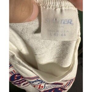'86 Starter Giants t shirt, size large, one super small spot on the collar which I have pictured and is not that noticeable, I have not attempted to treat it or anything. Overall great vintage condition