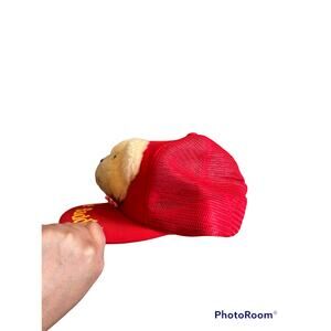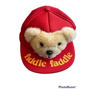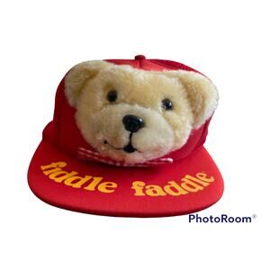Vintage 1986 Red Fiddle Faddle Promo Hat Teddy Bear Trucker 3D Puff Cap