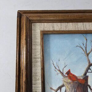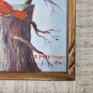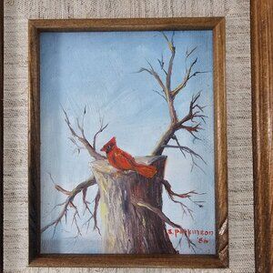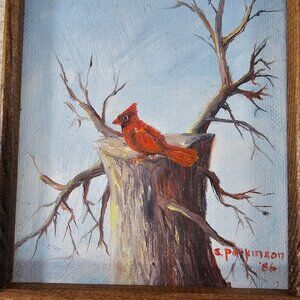 Vintage 1986 S. Parkinson Cardinal Bird Painting In Wooden Frame