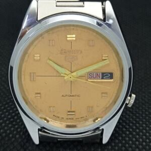 Stainless Steel Case in great condition and almost no flaws. The face features Gold accents on Gold Face giving an awesome vintage look overall. It also has a date function!