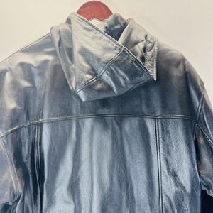 Vintage 1986 Wilsons Hooded Quilted Lined Leather Jacket Cinch Waist 1X