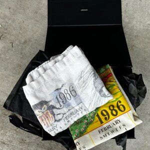 Two vintage linen 1986 dish towels in upcycled gift box. One features birds another a classic New England covered bridge. A fun and sustainable gift for a tea lover. Especially if 1986 is a meaningful year to them.