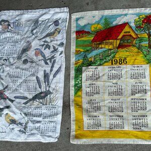 Vintage 1986 kitchen linen, tea towel set of two calendar dish towels, dishcloth