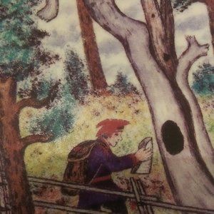 Arabia Finland small decorative wall plate" Post Hole" In good used condition . There is a bread twist tie that was used to hang the plate so I would change that to something more secure . ~4.50" in diameter ruler in picture above.