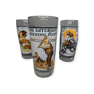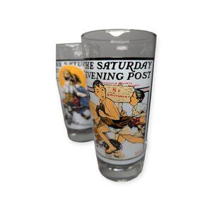 Vintage 1987 Arby's Norman Rockwell Saturday Night Post Glasses Lot of 4