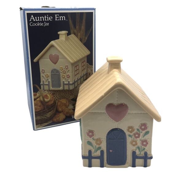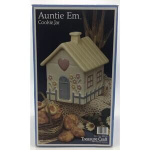 Vintage 1987 Ceramic Auntie Em Cookie Jar, Hallmark Cards Treasure Craft Cottage. Preowned, stored in original box. No cracks, chips, or crazing. Bottom of jar has some staining along edges - inside is clean. Shipped USPS.