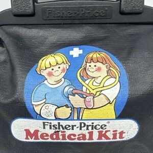 Vintage 1987 Fisher Price toy medical Doctor kit #2010 doctors black bag Tools