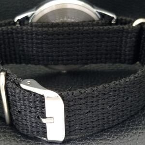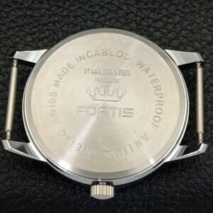This watch has a stainless steel case in great condition with almost no flaws. The face features Black accents on a Silver Face giving an awesome vintage look overall.
