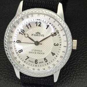 Vintage 1987 Fortis Manual Mens Silver Watch W/Nato Strap & Black accents