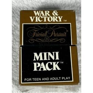 The vintage 1987 Horn Abbot Trivial Pursuit War & Victory Mini Pack Expansion Box is a board game expansion set designed for the popular trivia game Trivial Pursuit. Specifically themed around war and victory, this mini pack includes cards with questions related to this theme. The game is intended for 2 or more players aged 12 and above, and it adds a new dimension to the gameplay by expanding the range of questions and topics that can be explored during the game.