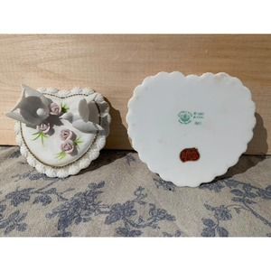 Vintage 1987 Lefton Heart Shaped Pair of Trinket Box with Doves